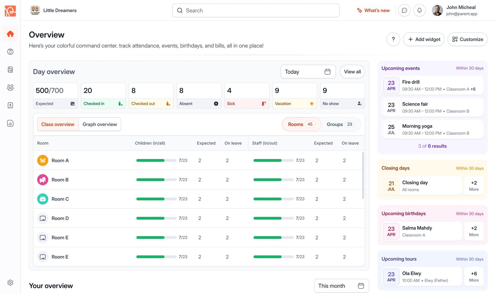 We also share daily photos, activity highlights, and progress reports directly through the app, keeping you fully informed and reassured throughout the day.